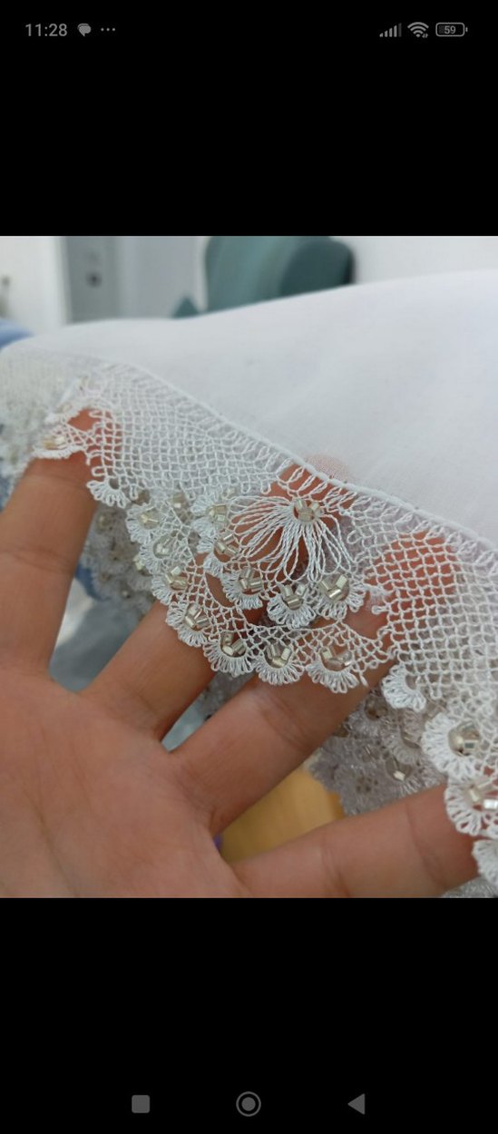 Beyaz iğne oyası tülbent