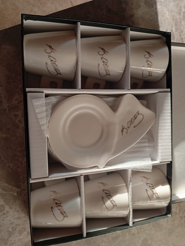 Beyaz İmza Detaylı 6'lı Fincan ve Tabağı Seti
