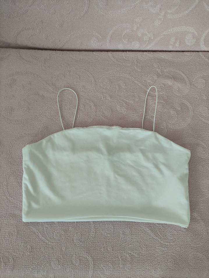 Beyaz renkli, ince askılı, desensiz sütyen. Streetwear ve athleisure tarzına uygun rahat bir parça. ✨