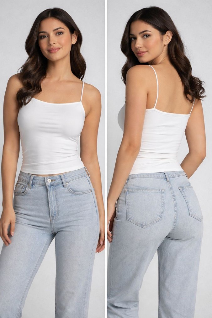 İnce askılı, beyaz ve kalıplı bu kadın bluz desensiz ve rahat sokak stili için uygundur. s m l bedenleri mevcut