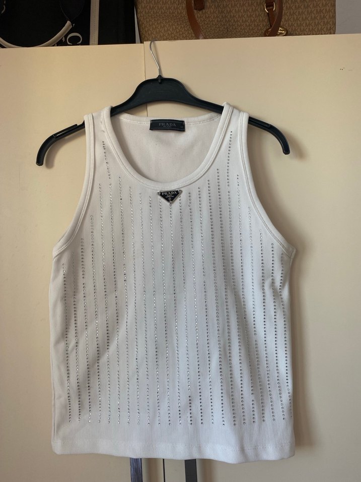 Beyaz pamuklu, ince örgü desenli, kolsuz ve kısa kesim atlet, günlük şık bir görünüm sunar.