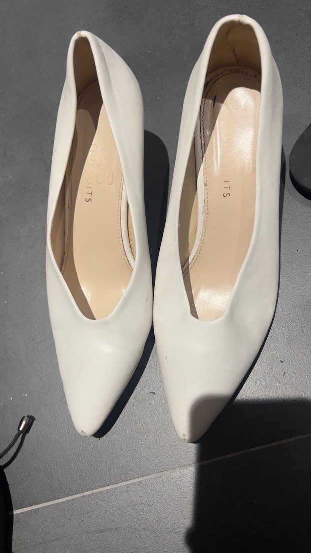 Beyaz ince topuklu stiletto, klasik silueti ve ofis kullanımı için uygun rahat kauçuk malzemeden yapılmıştır. Zarif ve normcore tarzıyla şıklık sunar.
