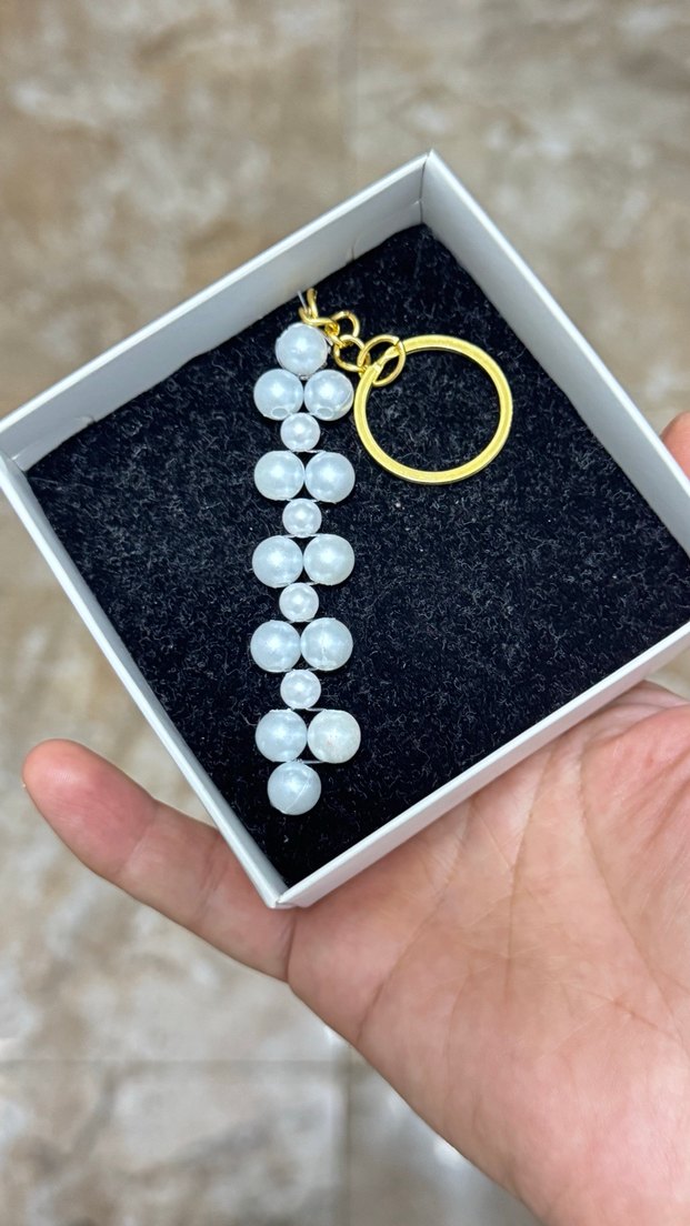 beyaz inci ile yapılmış sade ve minimalist bir tasarıma sahip, altın renkli halka ile tamamlanmıştır. Çağdaş ve sade bir stil yansıtır..