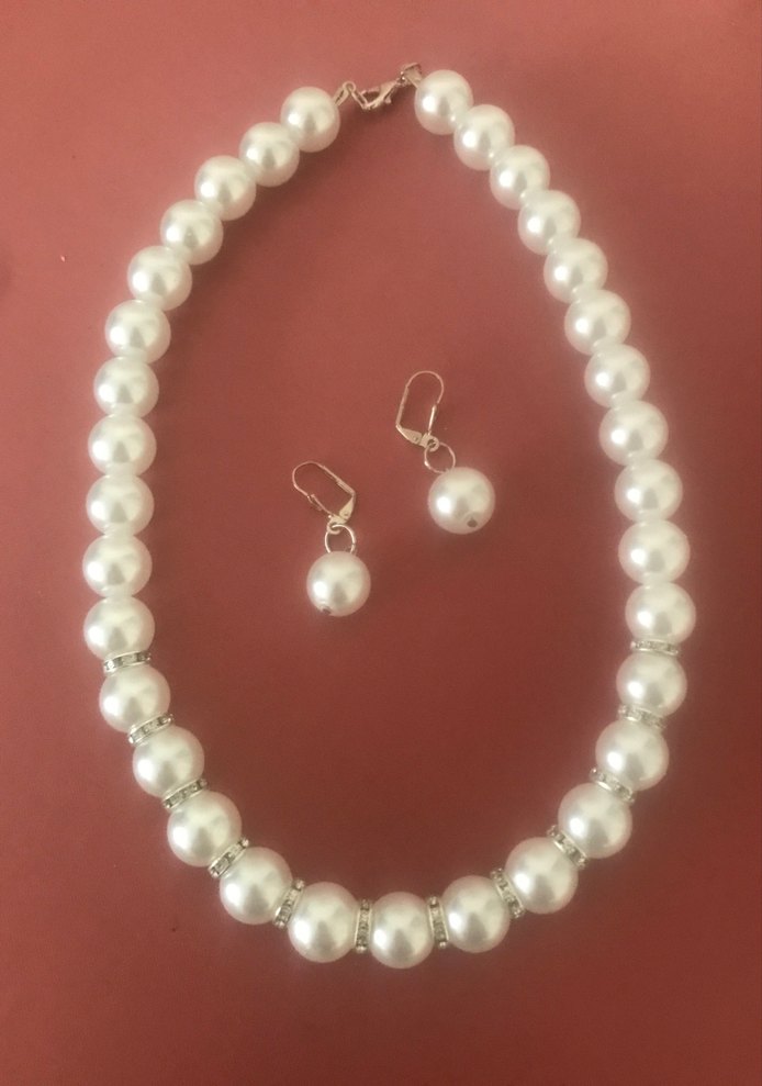 Beyaz İnci Boncuklu Kolye ve Küpe Seti