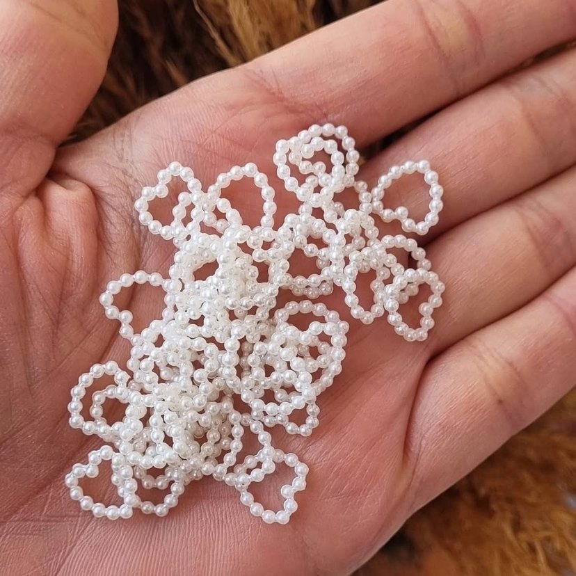 İnce çiçek desenlerinde tasarlanmış beyaz inci görünümlü tırnak süsleri, tırnaklara zarif bir dokunuş katmak için uygun. Tanesi 5₺