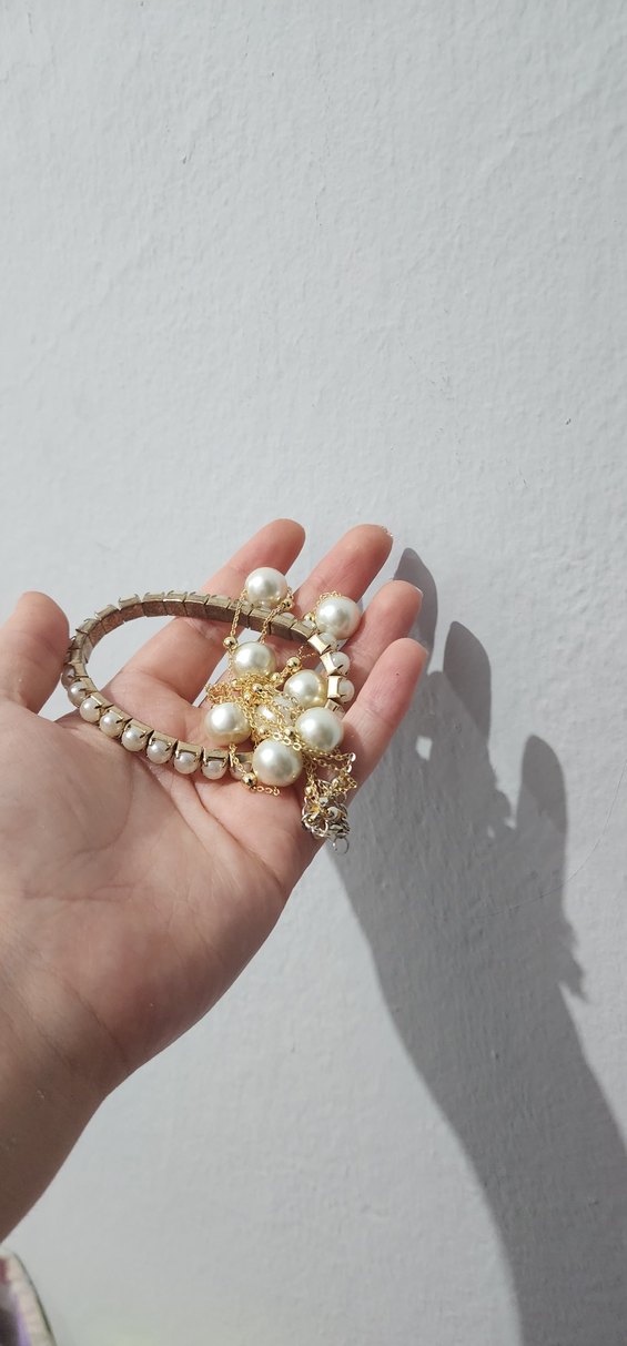 Beyaz incili, normal uzunlukta midi kolye. Desensiz ve hafif renkte, Paris tarzı bohem görünüm sunar. Günlük kullanıma uygundur. ✨ Ablamın nişanı için bir bijuteriden aldığım inci kolye ve bileklik. Birer kez taktım. Teklif verebilirsiniz.