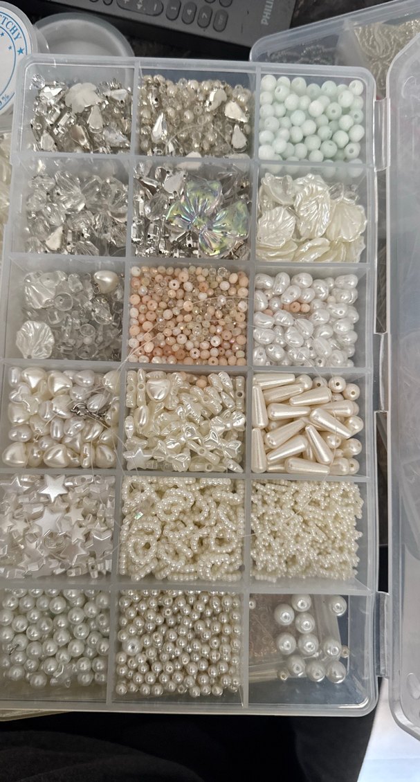 Beyaz İnci Takı boncukları halkaları hepsi organizer kutusunda