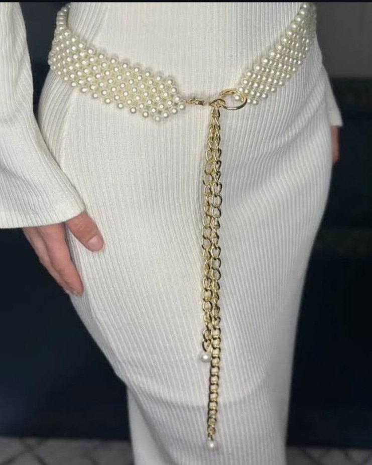 Beyaz inci detaylı ve parlak altın zincirli kadın bel zinciri, klasik zarafeti Paris sokak modasıyla buluşturur. ✨kemerin şıklıgına bakarmısınız çok güzel aşırı şık yaz bitmeden hemen sipariş verin harika kombinler yapın