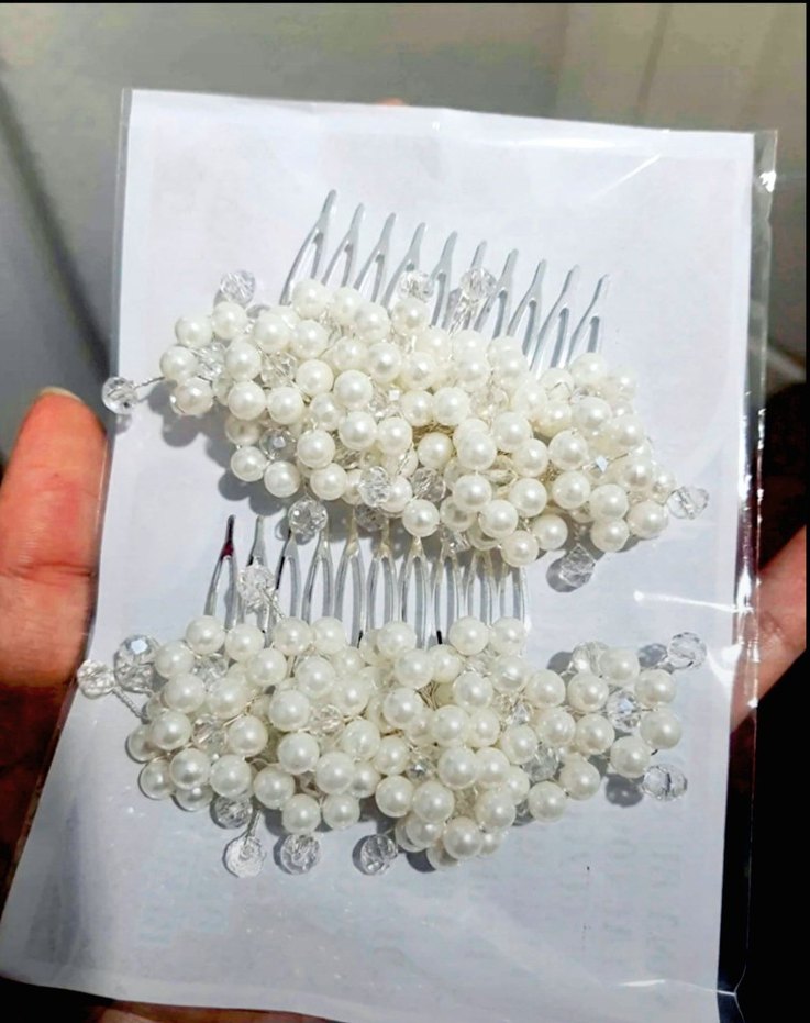 İnci ve kristal boncuklarla süslenmiş, beyaz gelin tokası çift seti fiyatıdır. Çift olarak çok uyguna satıyorum. Nişanımda kullandım temiz ürün