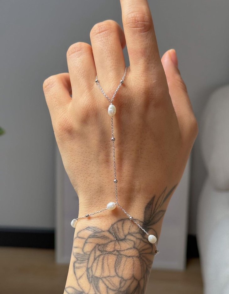 Beyaz İncili Gümüş Şahmeran Bileklik
