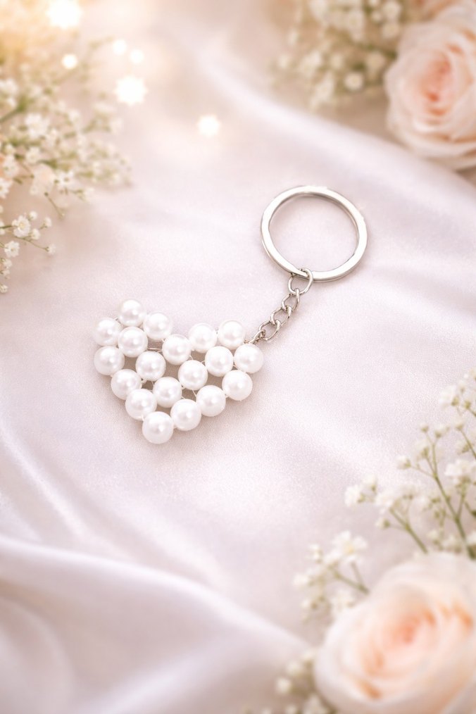 Zarif ve sade şıklığı bir araya getiren inci detaylı kalp anahtarlık, sevginin en naif halini yansıtır Özenle dizilmiş inci görünümlü boncuklardan oluşan kalp formu, anahtarlarınıza ve çantalarınıza romantik bir dokunuş katar. 10 lu sipariş alınır