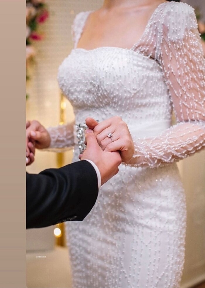 Beyaz incili söz nişan elbisesi