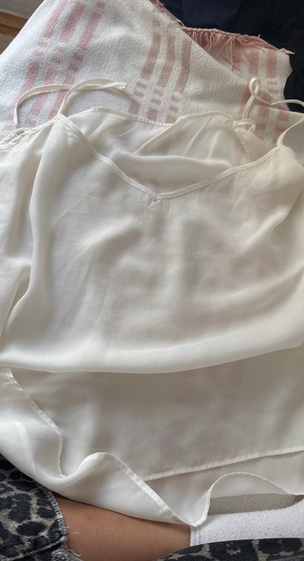 Beyaz İpek Dokulu Askılı Bluz