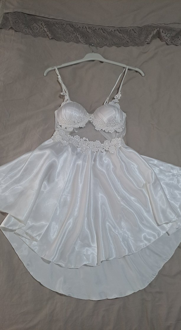 Beyaz İpek Görünümlü Mini Güpürlü Gecelik