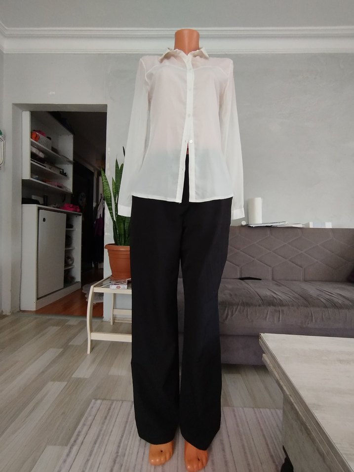 Beyaz İpek Görünümlü Ofis Gömleği ve pantolonu