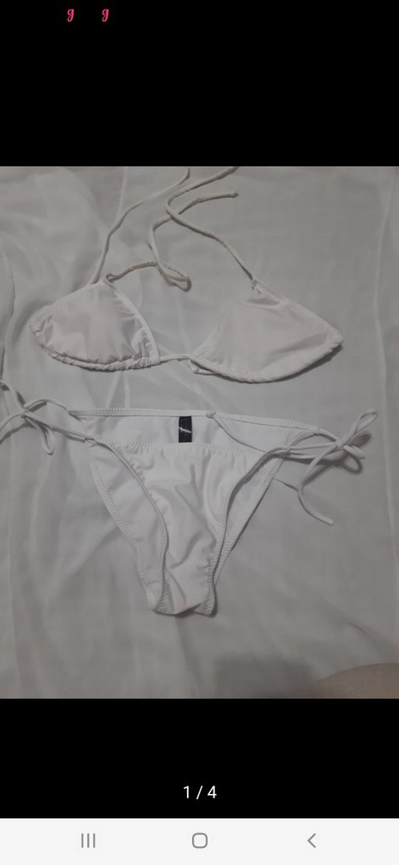 iplerınde sararma var azda olsa...Beyaz renkte, ipli askılı, kısa boy ve vücuda oturan kesime sahip bikini takımı. Minimalist ve şık, plaj ve sokak modasına uygun.
