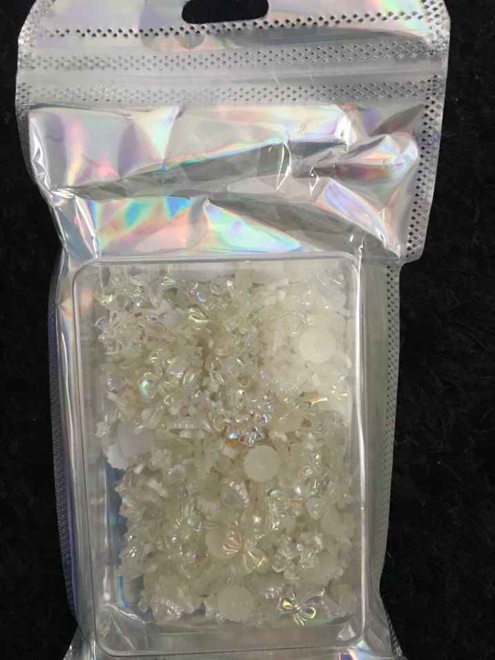 Çeşitli şekillerde beyaz ışıltılı tırnak süslemeleri. Tırnaklara hafif parlaklık katar. ✨