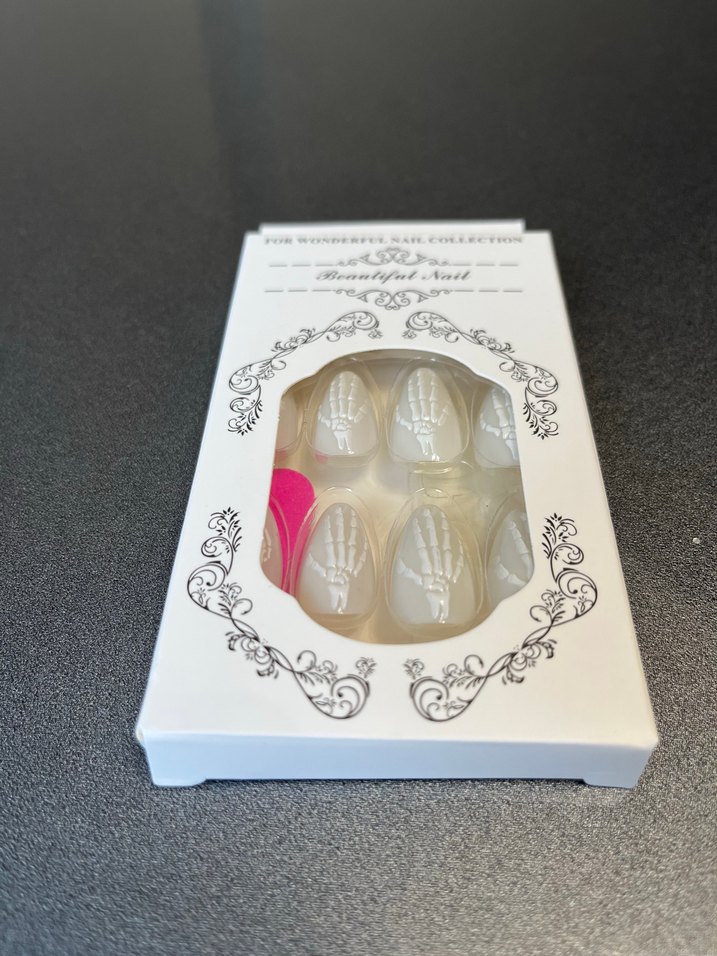 Beyaz iskelet desenli tırnak süsleri, tırnaklara hafif ve şık bir dokunuş katar. 24 adet tırnak 24 adet yapıştırıcı bir adet törpü