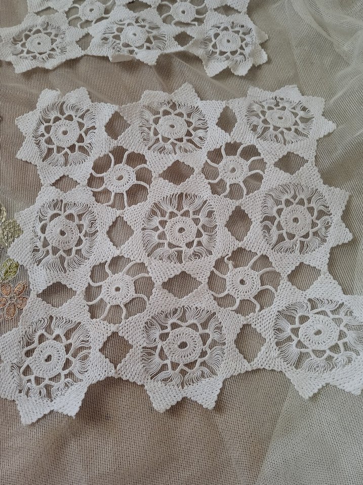alti adet çiçekli dantel desen el işi Beyaz işlemeli bohem tarzda, çiçek desenli ince ve zarif dantel örtü.