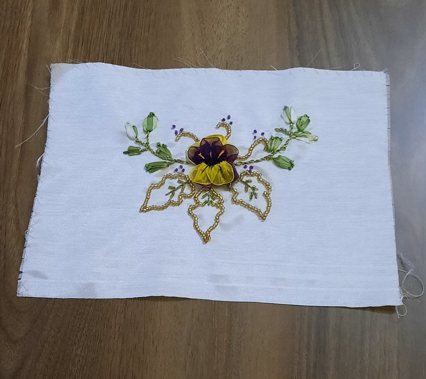 Parlak beyaz kumaş üzerinde bohem tarzda işlemeli çiçek detayları bulunan değerlendirmelik isterseniz kazaklarınıza işleyebilirsiniz