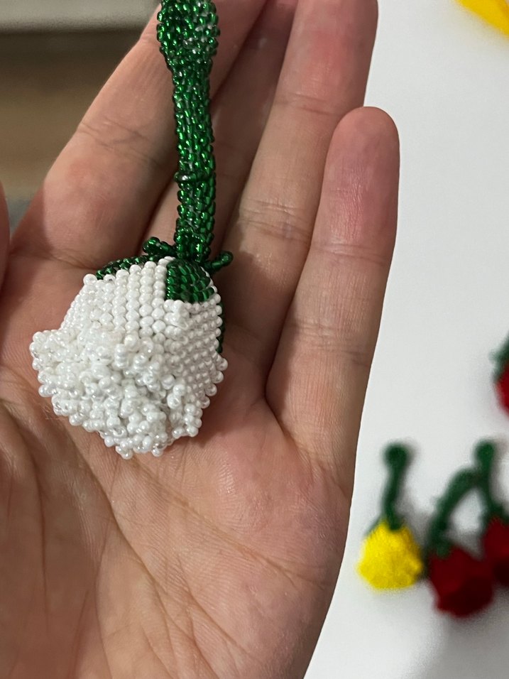 Beyaz İşlemeli Boncuklu Kadın El Zinciri