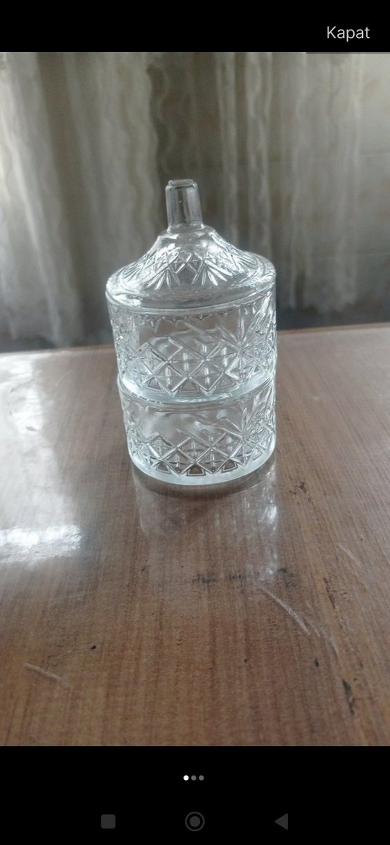 İnce desenlere sahip beyaz cam kapağı ile dekoratif kullanım için uygundur. Hafif renklidir. lokumluk sunumluk olarak kullanılabilir yükseklik 12 cm cevresi 22 cm. dir