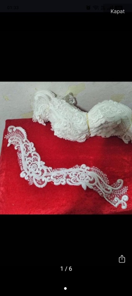İnce işlemeli beyaz dantel şeritler, dekoratif el işleri için uygundur.