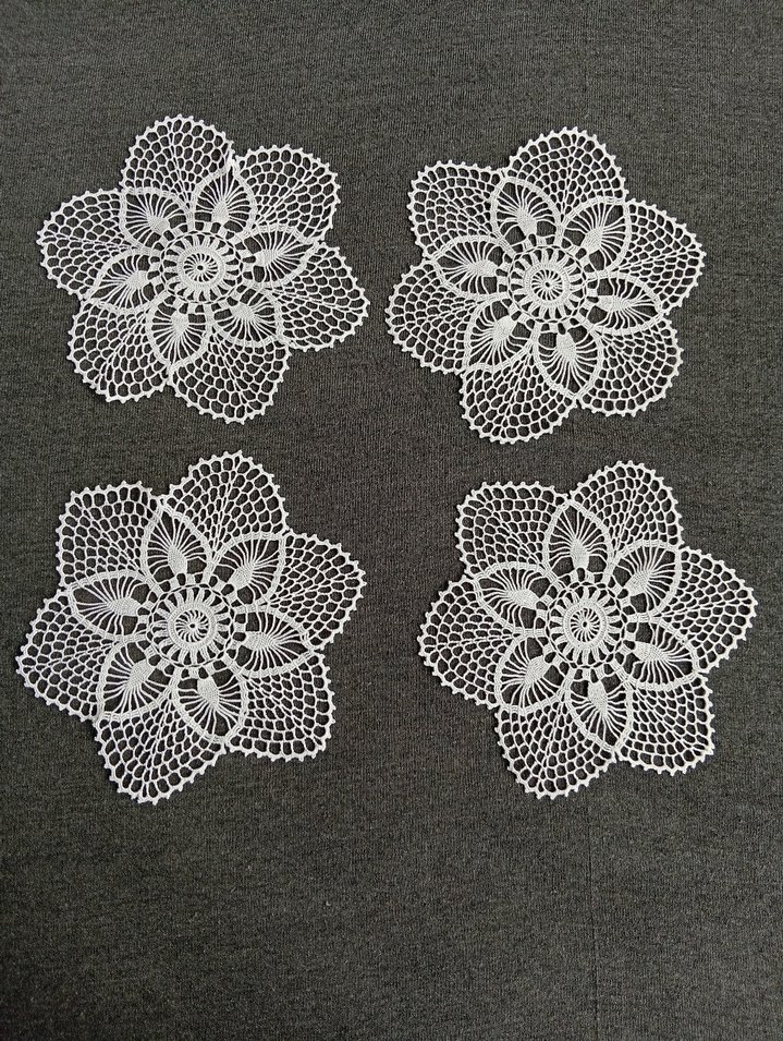 Geleneksel tarzda işlenmiş beyaz dantel değerlendirmelik olarak kullanılabilir.4 parça 18 x 18 cm.