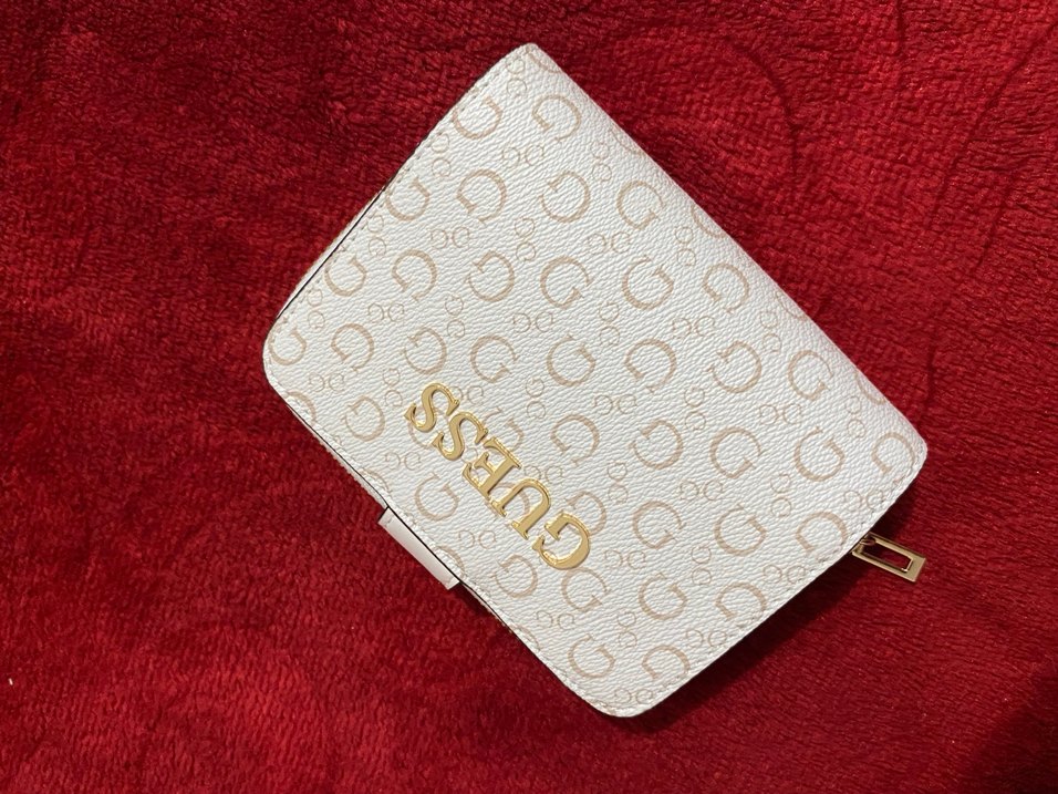 Beyaz İşlemeli Fermuarlı Guess Kadın cüzdan