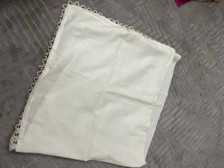 Beyaz İşlemeli Oyalı Eşarp