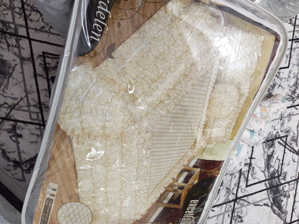 Parlak kumaş ve detaylı işlemeli desenlere sahip beyaz yatak örtüsü, "delen" markalı. Yatak odasına zarif bir dokunuş katıyor. ️