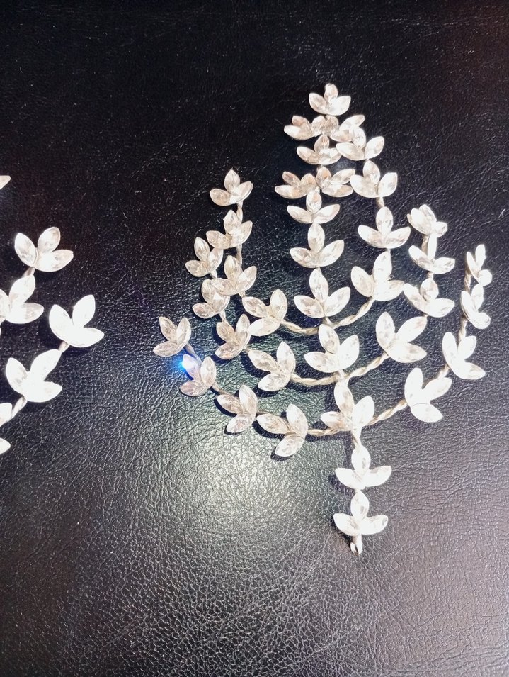 Beyaz yaprak desenli çağdaş tarzda saç aksesuarlarıDüğün ve minimalist moda sevenlere uygun şık tasarım.