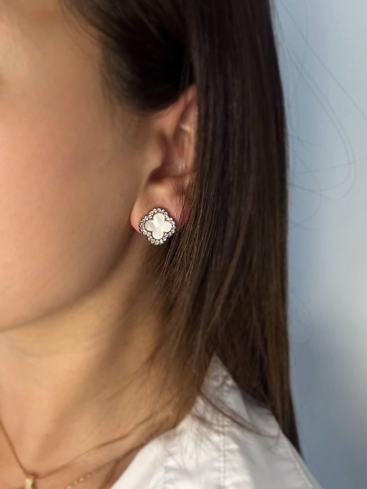 Beyaz İşlemeli Sıra Taşlı Midi Küpe