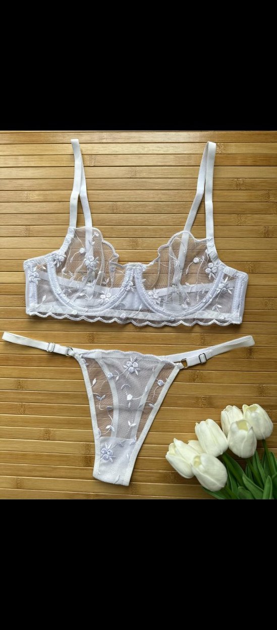 Nakış işlemeli, beyaz ve hafif şeffaf kumaştan yapılmış minimalist bohem tarzda sütyen takımı. Alt çamaşırı belinize göre ayarlanabiliyor. 75 80 bedenleri ve renk alternatifleri bulunmaktadır