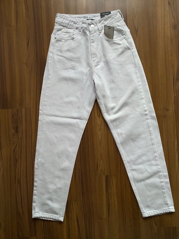 Tam kalıp (34 beden) beyaz mom Jean.