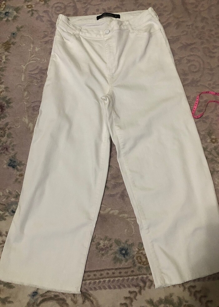 Beyaz jean pantolon Yanlardan hafif daraltıldı ama kalıp olarak ölçülerini paylaştım Hiç giyilmedi