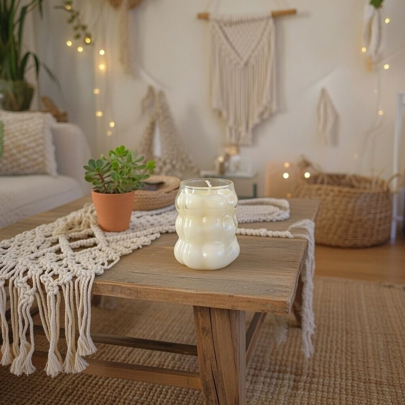 Pürüzsüz dokulu, beyaz kabarcıklı mum, sıcak bir ortam yaratmak için uygundur. ️amber kokulu