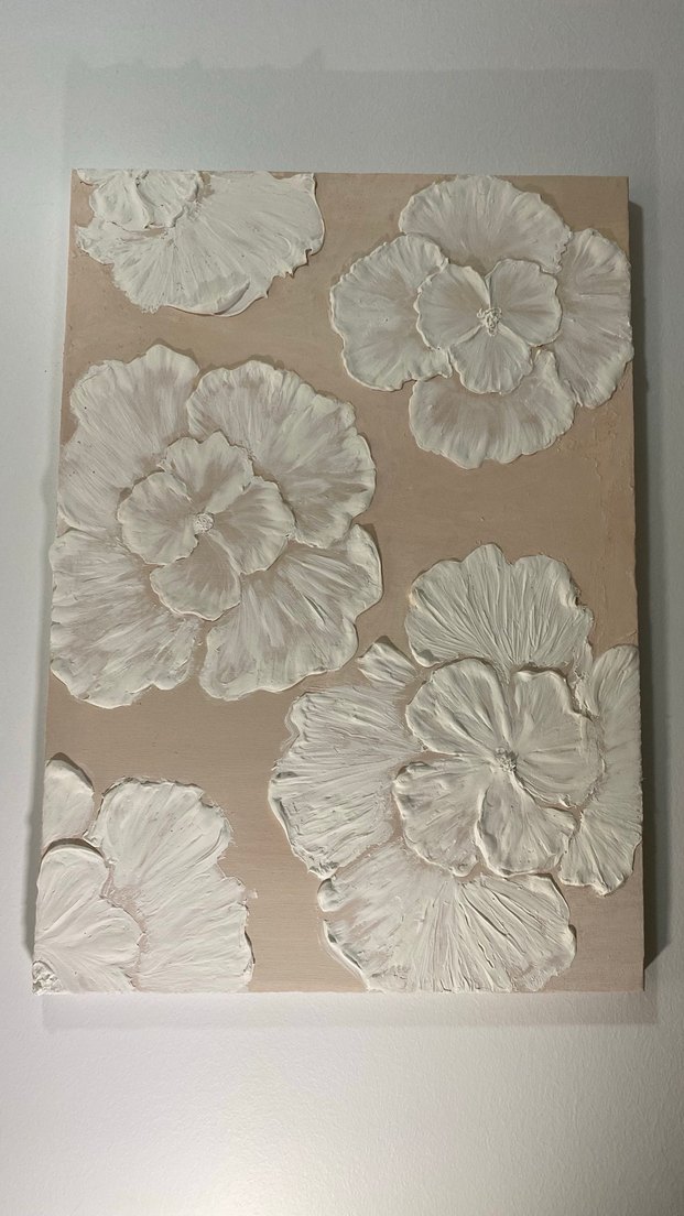 Bu tablo, açık zemin üzerinde kabartmalı beyaz çiçekler içerir ve dokulu, zarif bir çiçek deseni sunar. 35x50 ölçülerinde tuval üzerine rölyef pasta ile yapılmıştır. Yapmak için çok emek verdim o yüzden pazarlığa açık değildir. Ürünlerimin hepsi el emeği olduğu için elimden geldiğince uygun fiyata satmaya çalışıyorum. Anlayışınız için teşekkürler.