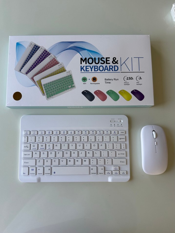 Beyaz kablosuz klavye ve mouse seti, sıfır üründür.