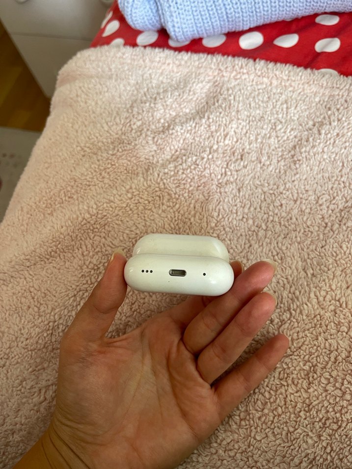 Beyaz kablosuz kulaklık şarj , kompakt tasarıma ve LED göstergelere sahiptir. Kolay taşınabilirlik için elde rahatça durur. Tek kulağı çalışmıyor