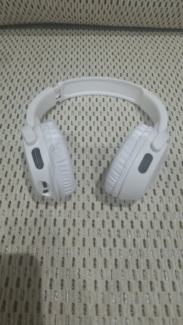 Yumuşak kulak pedlerine ve ayarlanabilir kafa bandına sahip beyaz kablosuz kulaklık, konforlu kullanım sunar.
