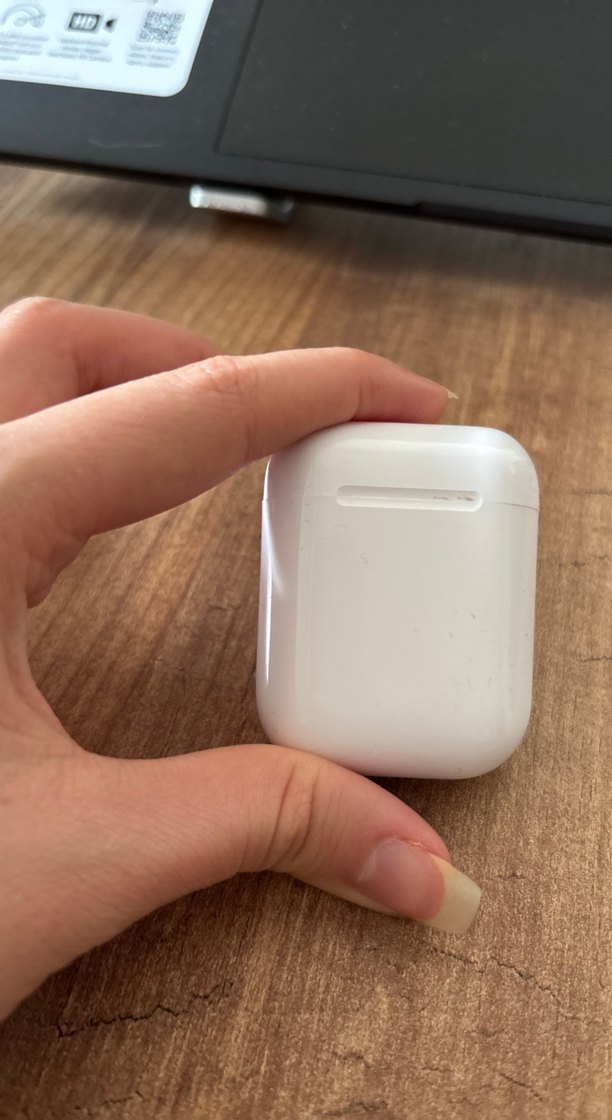 Kompakt tasarımlı beyaz kablosuz kulaklık şarj kutusu, elde rahatça tutulur ve taşınması kolaydır.