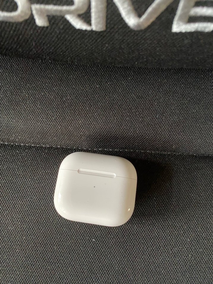 Beyaz kablosuz kulaklıklar için kompakt ve pürüzsüz tasarımlı şarj kutusu. Kulaklıkları saklamak ve şarj etmek için uygundur.