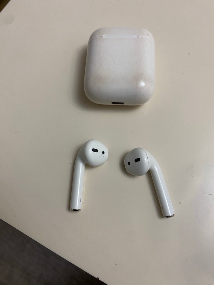 Beyaz kablosuz kulaklık ve şarj kutusu, şık ve kompakt tasarıma sahip. orijinal AirDrop hiçbir sıkıntısı yoktur.