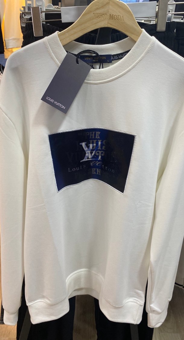 Beyaz renkli, yuvarlak yaka ve uzun kollu erkek sweatshirtü. Pamuklu, bol kesim ve önünde parlak baskı ile velcro detayına sahip, rahat sokak stili için uygundur.