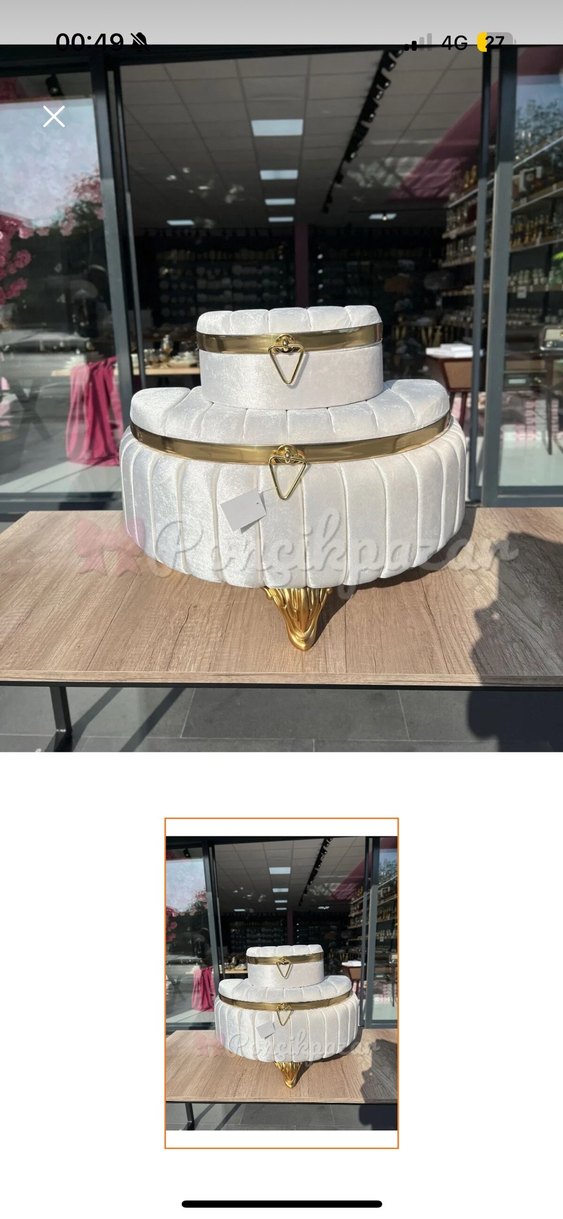 Yumuşak dokulu beyaz kadife makyaj organizerı, altın detaylı iki katmanlı bölmeye sahiptir.