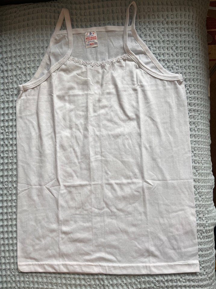İnce askılı, yakasında küçük dantel detaylı beyaz atlet. Yumuşak ve rahat kumaştan üretilmiştir. Hiç kullanılmadı. 3 adet