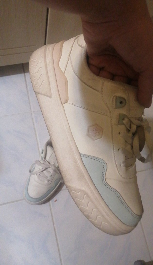 Bağcıklı, beyaz, dolgu topuklu kauçuk tabanlı kadın spor ayakkabısı. Pastel detaylı, günlük ve sokak stiline uygun.