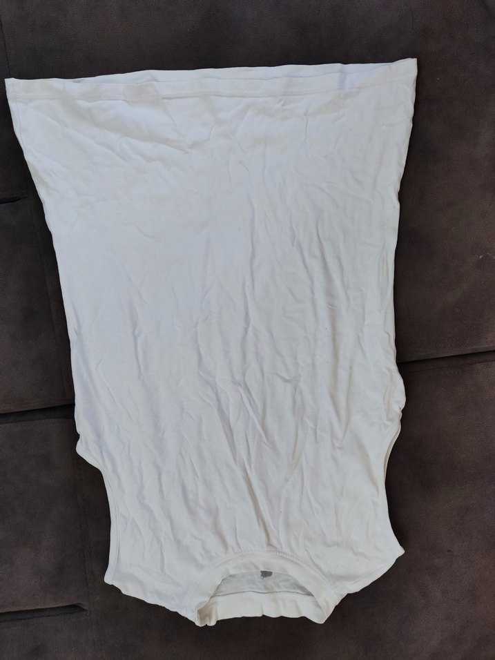 Beyaz, salaş kesim, normal midi boyda kadın atlet. Minimalist tasarımlı, rahat ve sade bir model.