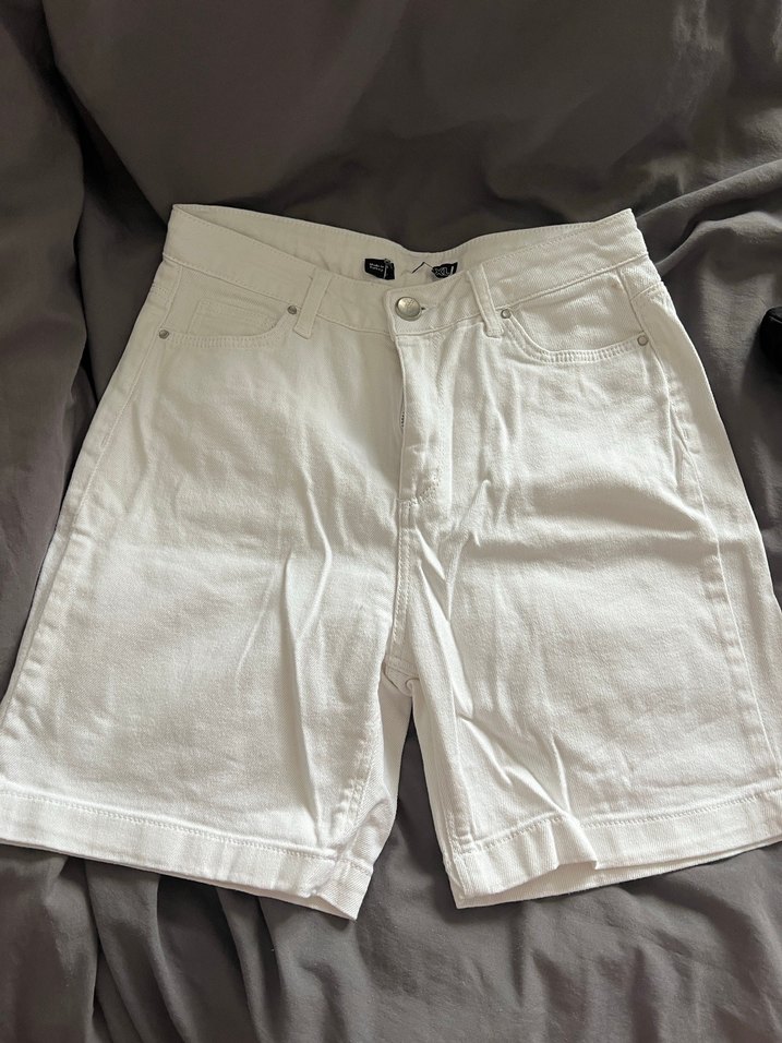 Beyaz, midi boy, bol kesim kadın bermuda şort, rahat ve şık bir günlük stil sunar. Esnemez. Beden yanlış basılmış bence. Ölçüleri referans alabiliriz.